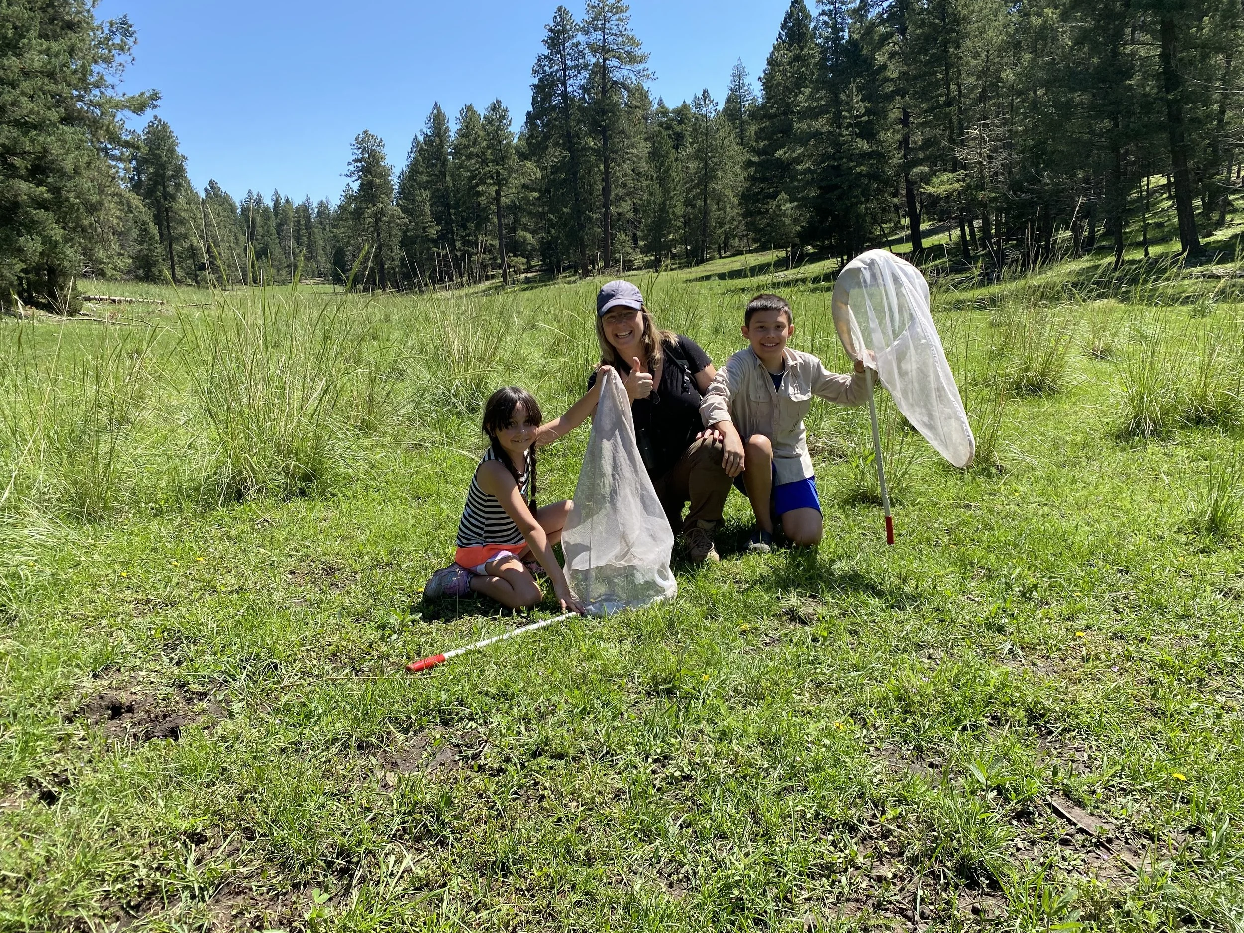 The family volunteered to help the USFWS survey for and capture (for captive breeding) Sacramento Checkerspots near Cloudcroft, NM. We discovered a new population and captured 1 male!